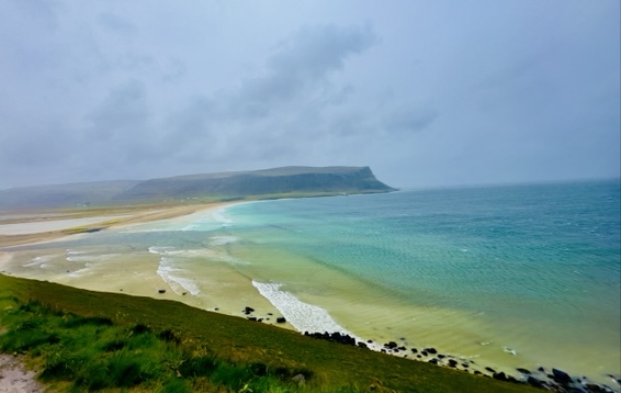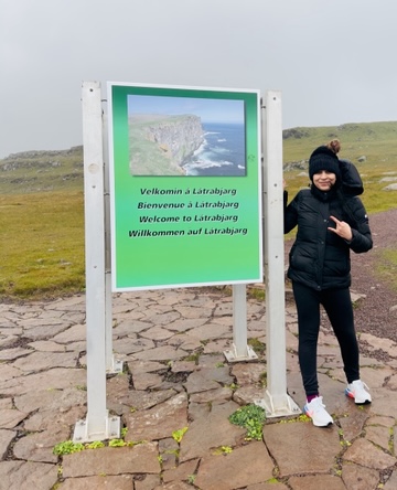 Our journey unfolded, revealing architectural marvels such as the black Saurbaejarkirkja Church and the majestic Dynjandi Waterfalls—a cascade of seven smaller falls. Raudisandur Beach stretched before us, a vibrant tapestry of colors, and the renowned Gardar BA 64 shipwreck made an effortless appearance along the road. Mountain pass introduced us to the intriguing Kleifabúi Stone Man, a testament to the craftsmanship commemorating the highway’s construction. Latrabjarg, the westernmost point of Iceland, beckoned with its 12-kilometer cliff adorned with myriad nesting birds. Navigating cautiously along the edge due to strong winds and lack of railings, we strolled through the cliff and I must tell you, wind felt the strongest when we were standing 400m above sea level facing North Atlantic Ocean. Best months to visit Latrabjarg are June to August when one can witness Puffins, Guillemots, Fulmars, Razorbills and even Seals along the coast below the cliff next to the lighthouse.