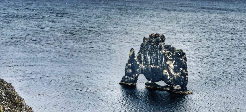 We navigated our way out of Westfjords, covering 300 kilometers until Borðeyri to rejoin Highway 1, the renowned ring road. Transitioning through this picturesque highway, flanked by expansive grass plains and adorned with thousands of waterfalls, we passed Gauksyri Guesthouse in Hunafloi. The pivotal moment came when we spotted Road 711, leading us to the iconic Hvítserkur stone stack, also known as the Troll of the Northwest. I would say this is your must visit spot if you have planned your Icelandic trip after watching 1000s of reels and reading blogs. Renowned for its seal population, the area features a seal-watching point in Illugastaðir. The final 20 kilometers leading to Hvítserkur comprised a narrow road, allowing only one car at a time. Driving cautiously amid sparse traffic, we were astonished upon reaching the destination, greeted by a multitude of tourists eager to witness this natural marvel. Hvítserkur offers two distinct spots: the Black sand beach on the east side of Vatnsnes Peninsula and the Hvítserkur Stone Stack. Observing the rock’s slender and towering structure, we discovered that it underwent repairs, with concrete reinforcement between its hind legs to withstand powerful ocean currents, a testament to the efforts to preserve this captivating geological wonder.