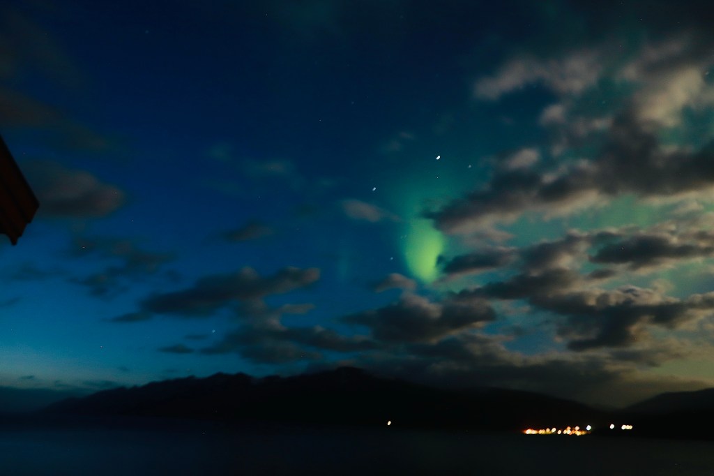 Approaching Akureyri, the landscape unfolded into a breathtaking panorama, though there remained over 200 kilometers of driving before reaching our next accommodation. Originally booked at the renowned K Apartments in Akureyri, we later opted for the highly recommended Ytri Vík stay (you can get more info here: https://ytrivik.inn.fan), influenced by suggestions from Bruised Passports and other online blogs. Securing a beautiful lake-facing cabin, we were captivated by the promise of stunning views. Arriving around 5 pm, we took advantage of the ample time to capture photos along the lakeshore. The standout feature of this stay was the private hot water tub just outside our cabin, fed by a continuous flow of geothermal water. Immersing ourselves in the soothing warmth with a lake view and a glass of wine proved to be the ideal way to unwind after a long day of driving. Shortly thereafter, we were treated to our second encounter with the Northern Lights right outside our cottage. The clear night sky illuminated for approximately 20 minutes after dusk, casting a magical glow from all directions. As clouds rolled in, signaling a change in weather, we reluctantly retreated indoors, cherishing the fleeting yet enchanting display of the auroras. As we attempted to document the experience through photos, none could truly capture the essence of this remarkable place.
