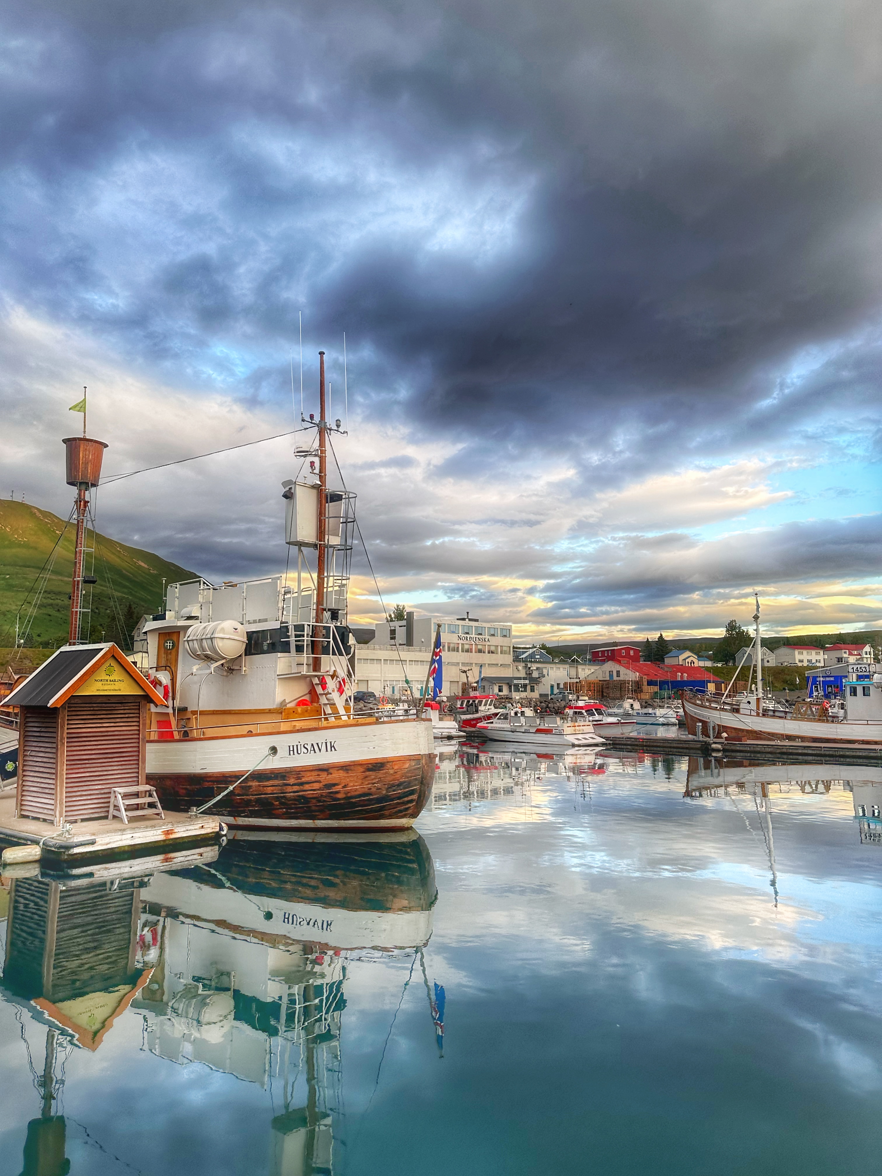 Before boarding our pirate-themed ship, we made a stop in the picturesque town of Húsavík for a quick lunch. Choosing the renowned Lókal Bistro, celebrated for its crepes, soups, salads, and wraps, proved to be an excellent decision. Their daily specials did not disappoint, and the delightful meal was complemented by the perfect setting—a sunny day, a cafe facing the ocean, and the charming ambiance of the small town. Energized by the delicious lunch, we eagerly headed for our highly anticipated whale-watching trip, marking a highlight of our Icelandic adventure.