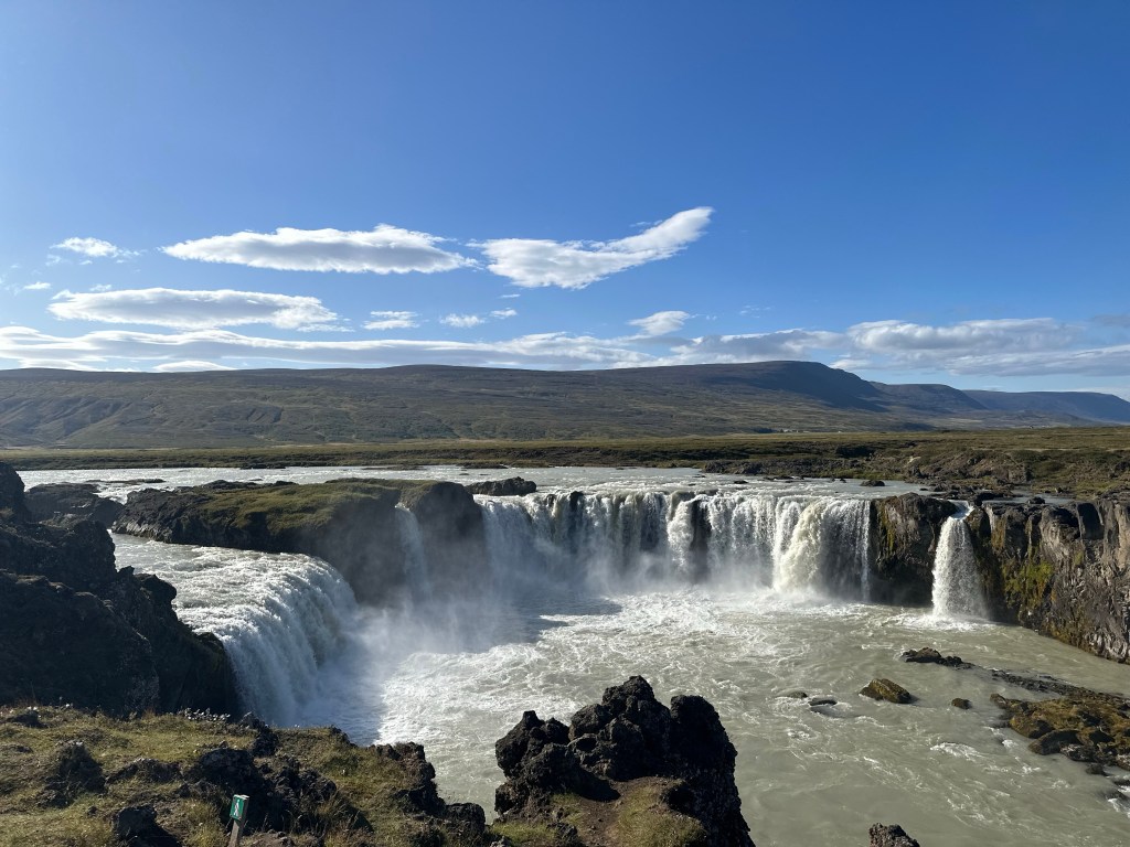 Today has been incredibly thrilling, filled with minimal travel yet maximum fun. Staying just 20 kilometers from downtown Akureyri, we’ve found ourselves regretting not delving deeper into Akureyri’s wonders. It’s astonishing to discover such a beautiful and lively town tucked away in the northern reaches of Iceland. Our day began with a homemade omelette and coffee, enjoyed beside the serene lake at our Ytri Cottage in Vik. Swiftly, we set out on the road to explore several enchanting waterfalls.