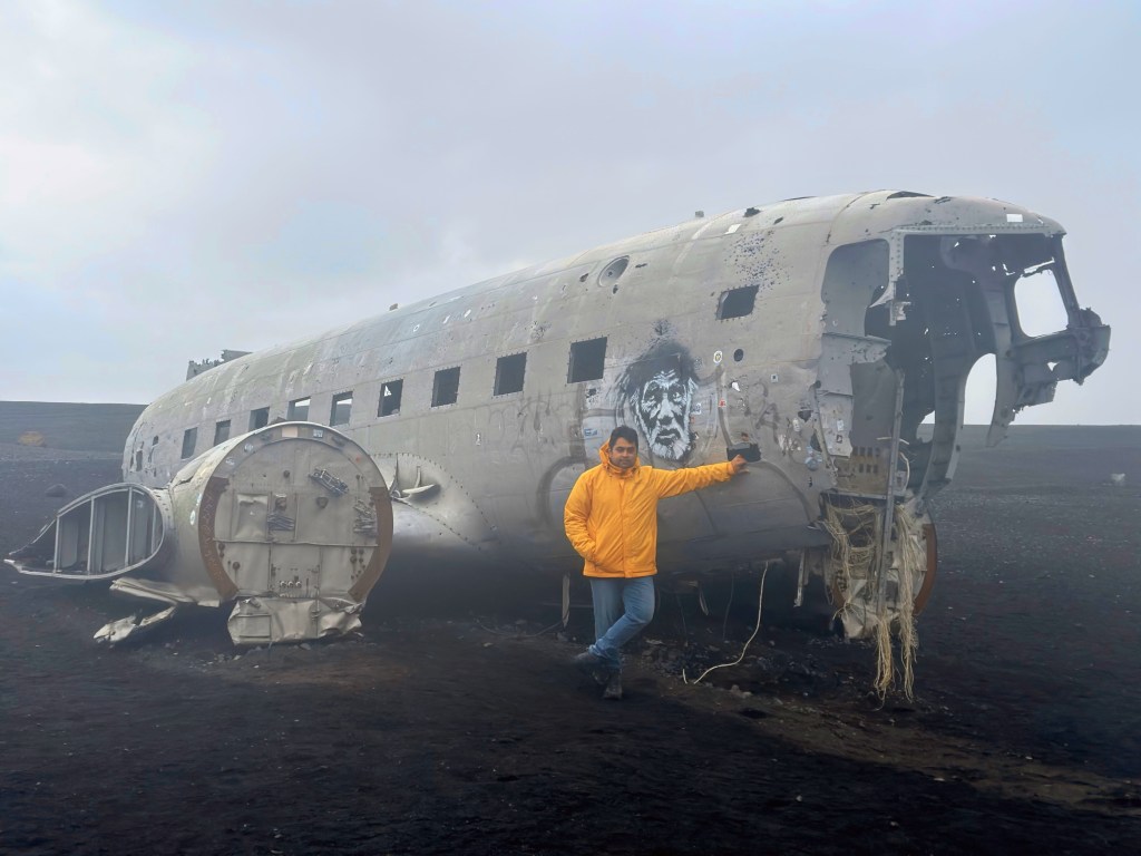 As we made our way toward the plane wreck, it rained on us five different times — each shower appearing out of nowhere and vanishing just as suddenly, as if it had never happened. The whole experience felt surreal. The wind was so fierce that we’d get completely soaked, only to be dried off within ten minutes before the cycle started all over again. In one of the photos below, you can actually see the front of my jeans still wet — oddly enough, the wind had only managed to drench that part!